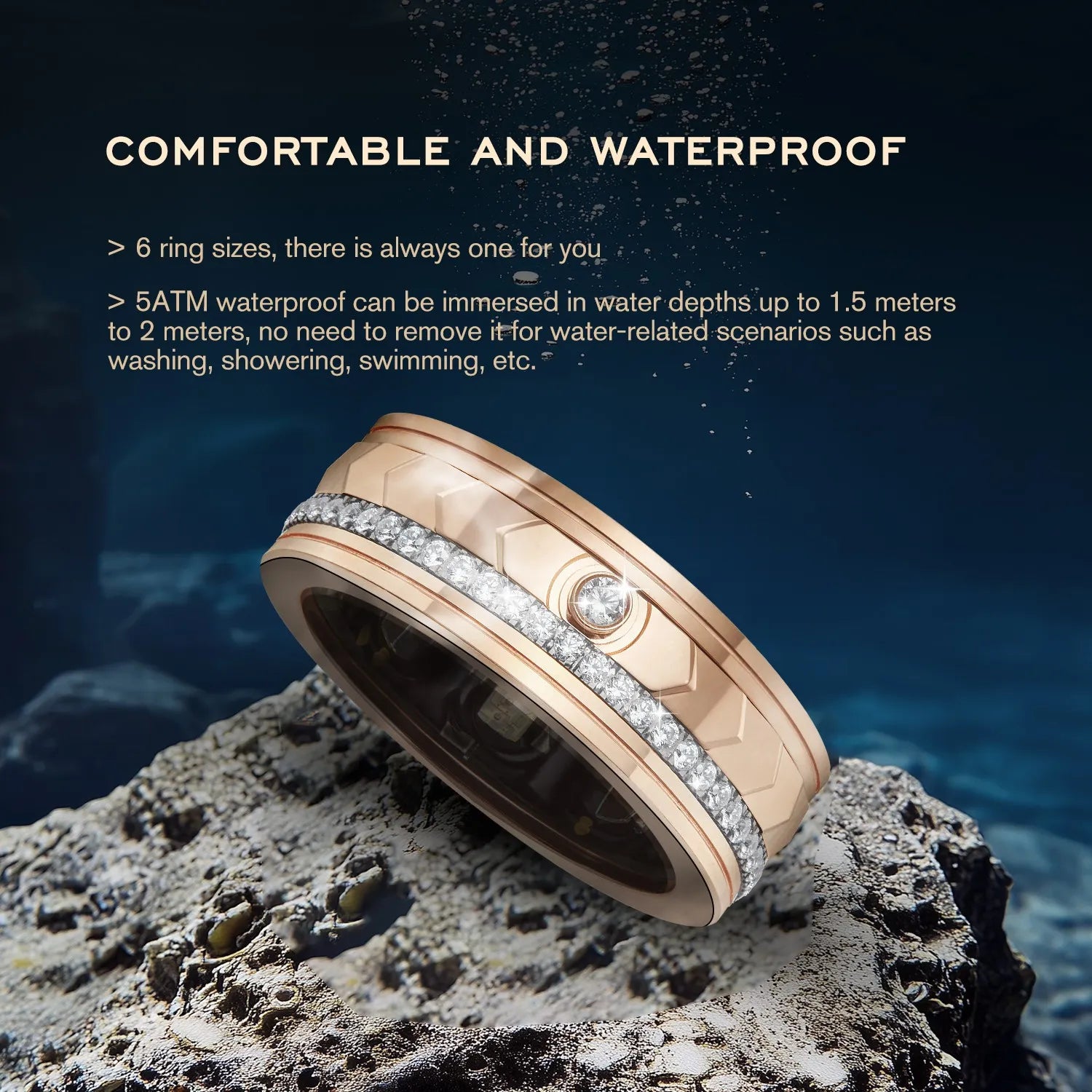 - COMFORTABLE & WATERPROOF - Offering 8-13, 6 ring sizes, there is always one for you.5ATM waterproof, can be immersed in water depths up to 1.5m to 2m, no need to remove it for wading scenarios such as washing, showering and swimming.